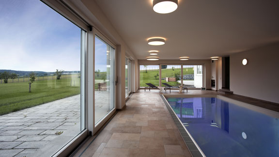 Der moderne Wohnstil ist geprägt von großen Fensterflächen. Großzügiger Durchblick mit Glasfassaden, bodentiefen Fenstern und Hebe-Schiebe-Türen lassen natürliches Tageslicht durch Ihre Wohnräume strömen. Die hochwertigen KNEER-SÜDFENSTER Hebe-Schiebe-Türen aus Holz und Aluminium-Holz liefern dazu eine besonders elegante Optik und einen nahtlosen Panoramablick. Die flache Bodenschwelle macht sie außerdem barrierefrei. Mit einer Soft-Close-Funktion und der Anbindung an Ihre Hausautomatisierung erhalten Sie zusätzlichen Komfort in der Bedienung. Auch bei großen Glasflächen müssen Sie auf solide Wärmedämmung und verlässliche Sicherheit nicht verzichten. Unsere Hebe-Schiebe-Türen bieten Einbruchschutz bis Widerstandsklasse RC-2.